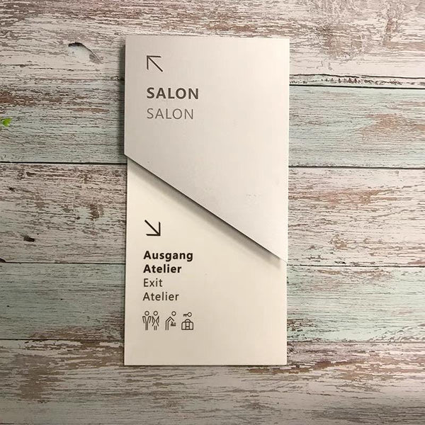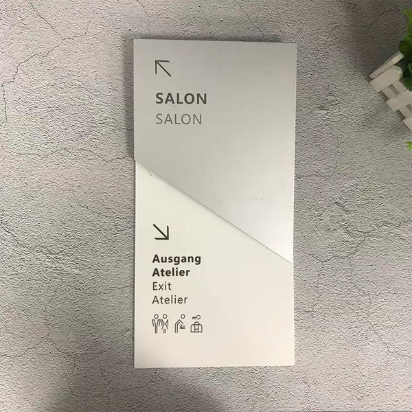 Each custom sign is modern designed with Acrylic & Aluminium Metal combination suitable for office, hotel, restaurant or shopping mall. Screw is required to install the sign.